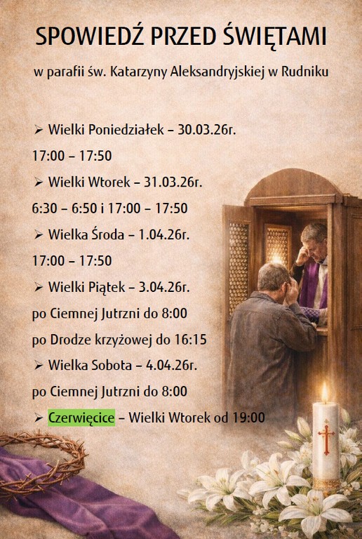 Plan spowiedzi - Wielki Tydzień 2026